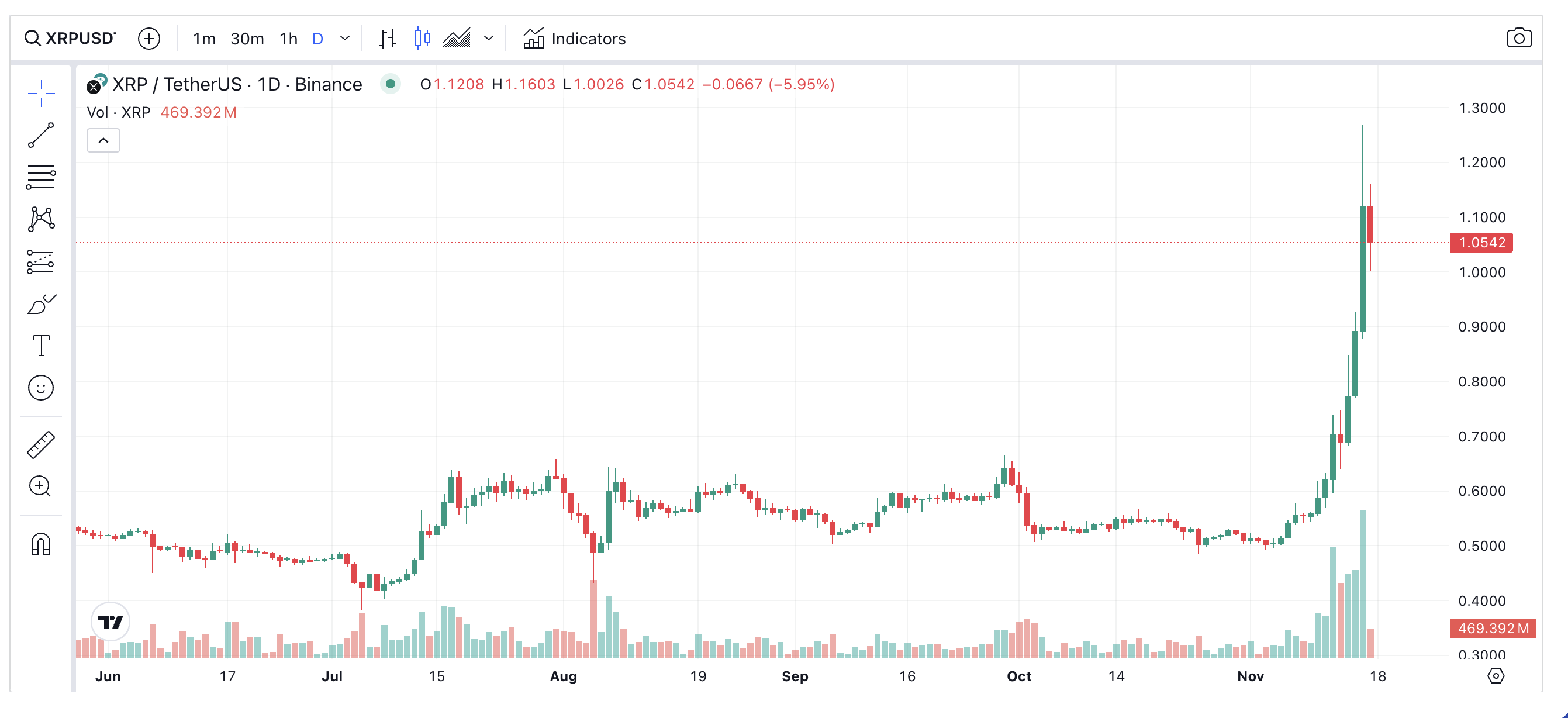 - 11월 5일 0.51달러에서 시작된 상승세 지속