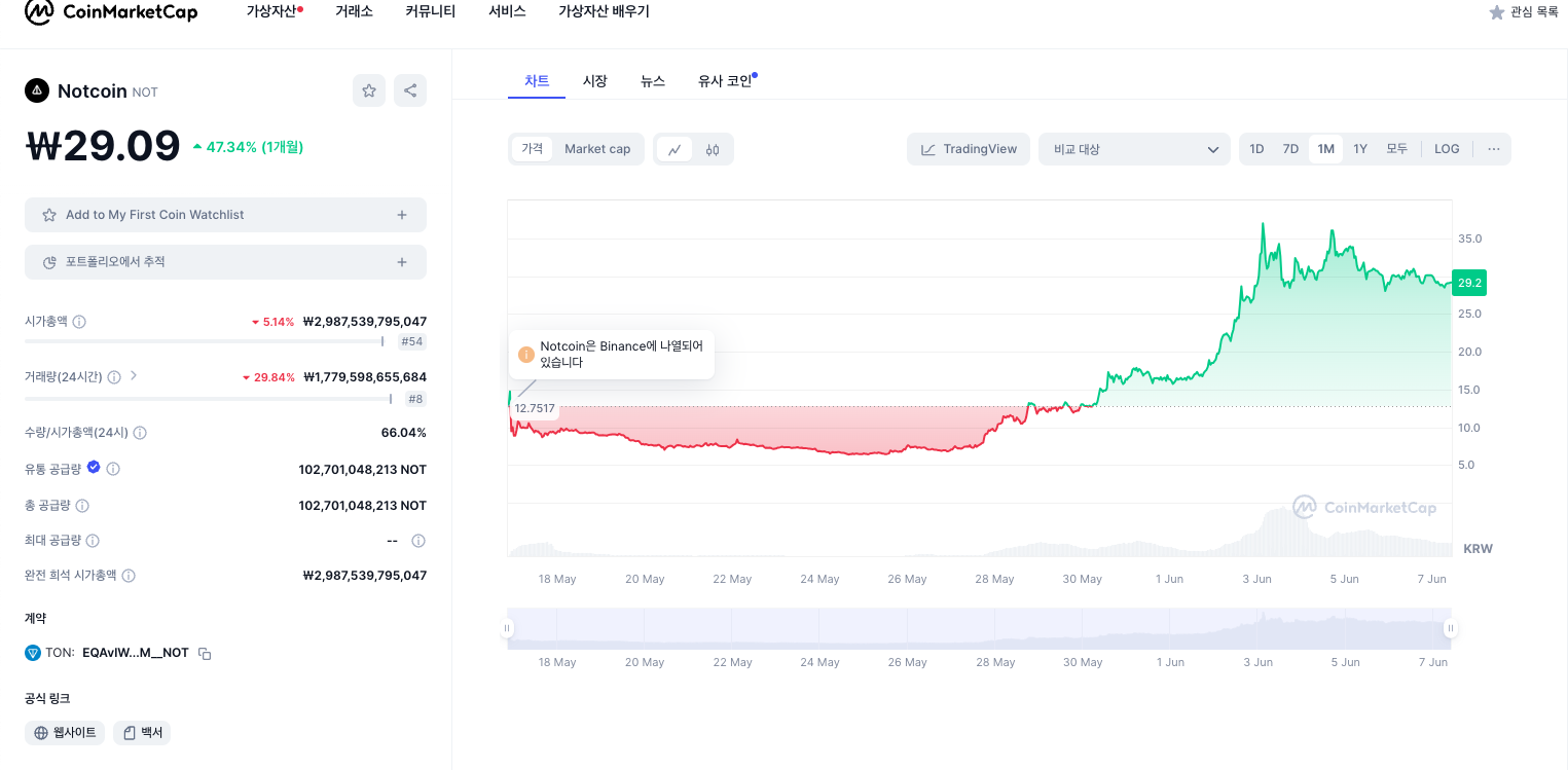 요즘에 핫한 Not 코인이 대표적이고 유명한 사례입니다.