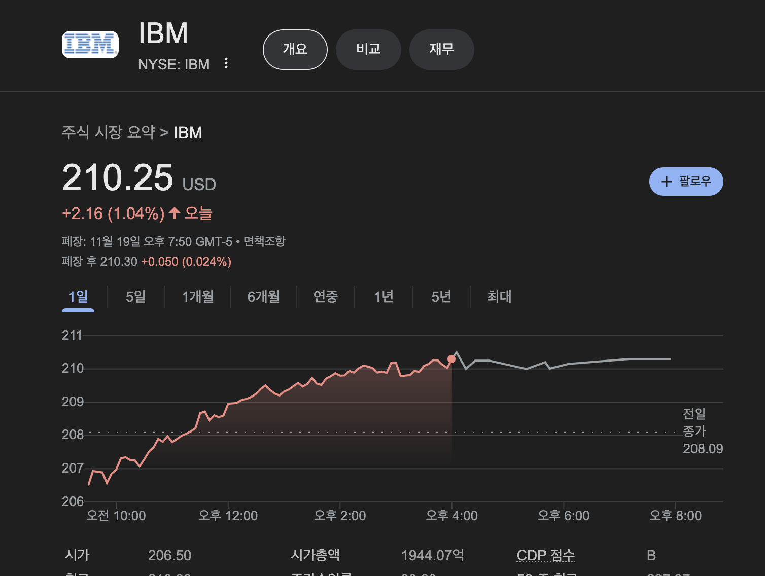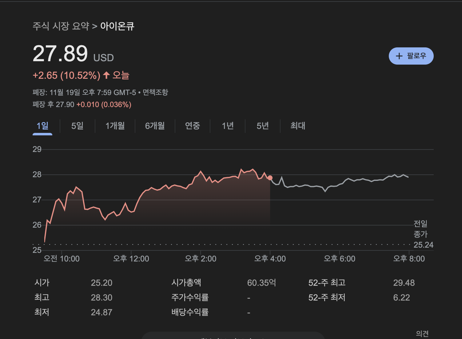 11월 20일 기준으로 주가는 아래와 같습니다.