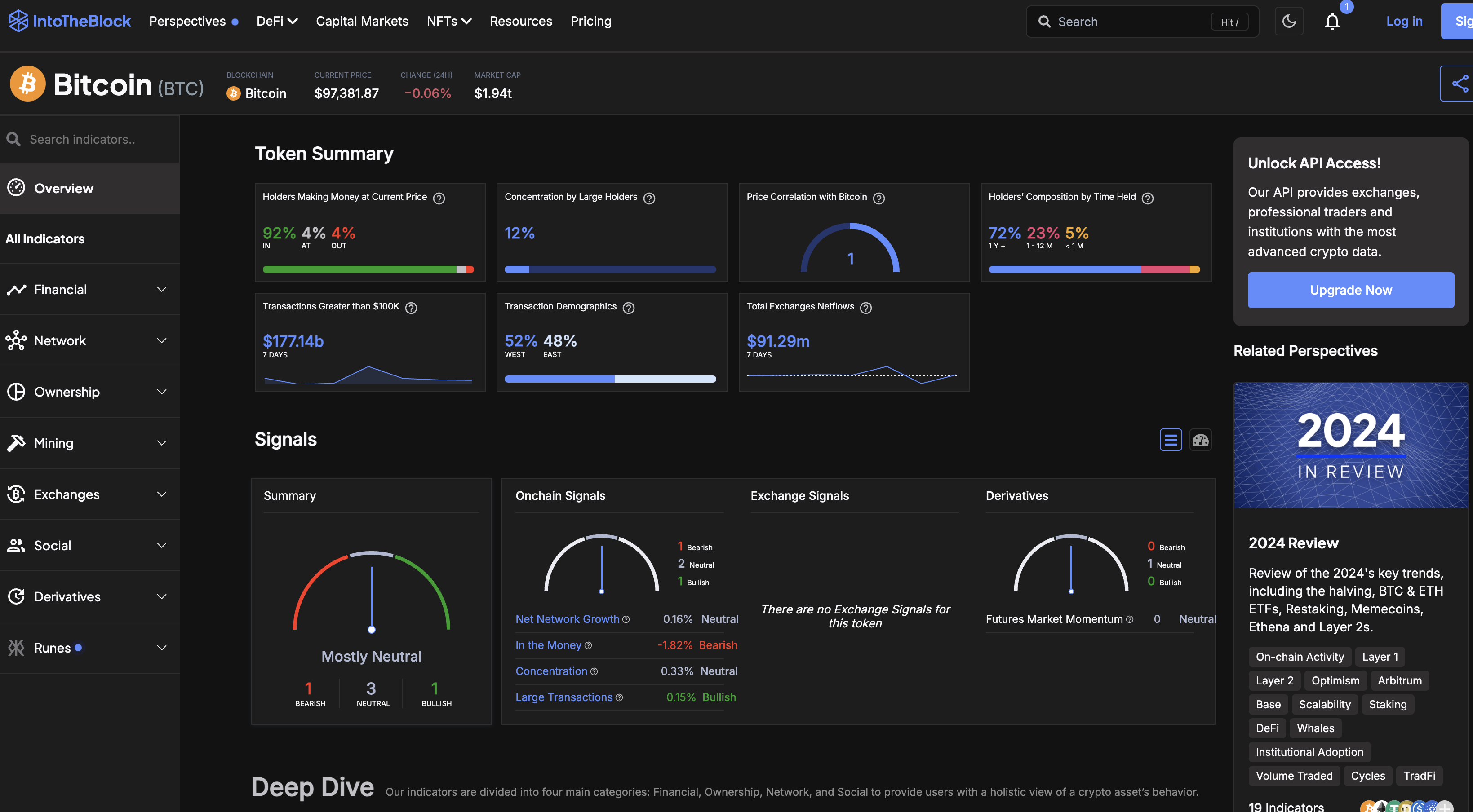 아래는 IntoTheBlock 의 UI 인데, 깔끔하게 되어있어 사용하기 괜찮은 것 같습니다.