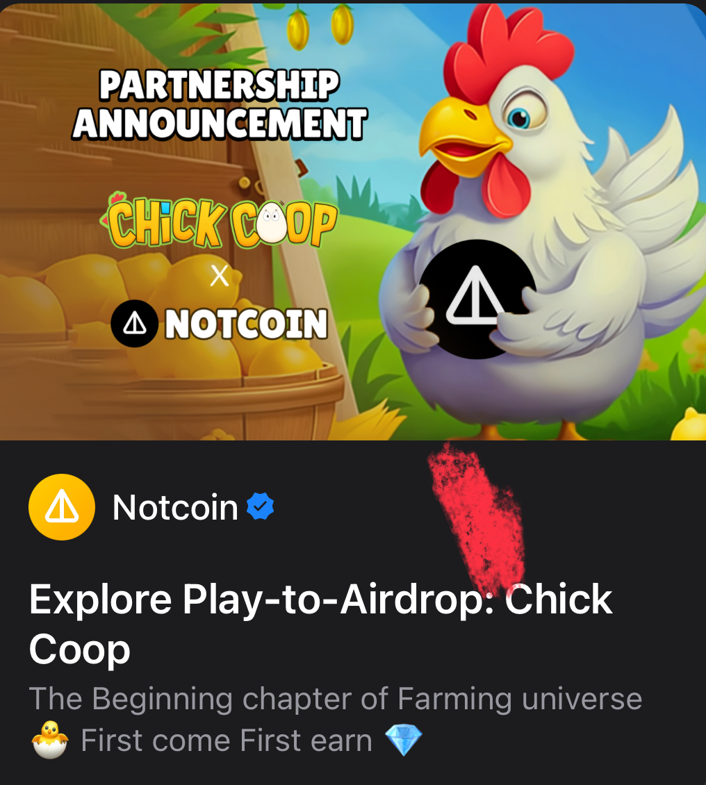 Chick Coop 플레이하면서Not Coin 무료 에어드랍 받기, 극초반 참여