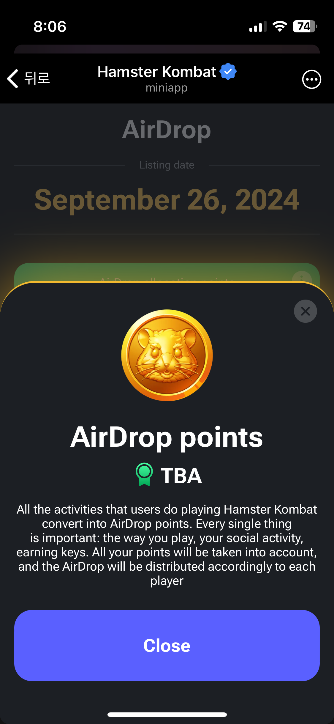 햄스터 콤바트 에어드랍에 참여하기 위해 다음을 준비하세요: